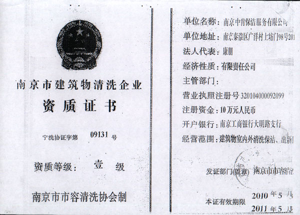 |   南京保潔公司注冊資金10萬元,是江蘇省家庭服務協會會員單位,江蘇省家政服務業分類執行標準起草制定單位,先后被評為江蘇誠信服務先進單位、南京是家政服務定點培訓單位、南京市十佳建筑物清洗企業、南京市誠信示范單位、南京市鼓樓區三信三優單位。董事長康朋是江蘇省家庭服務業協會副會長、江蘇省家政服務分類執行標準主要起草人。   南京保潔服務有限公司家政服務培訓中心聘請新加坡訓能培訓學院、中國石材工業協會、中國家庭服務業協會、《清潔顧問》雜志等單位專家及高級技師,結合國內外先進的清潔設備及技術做定期指導培訓。公司管理人員全部通過考核領取中級職業證書,所有家政服務...